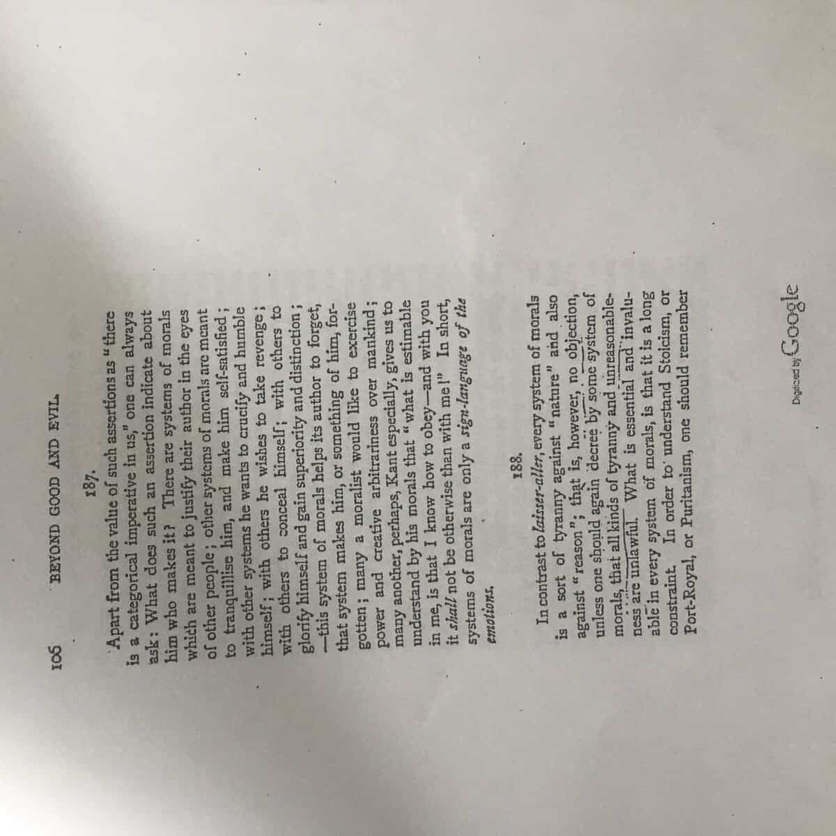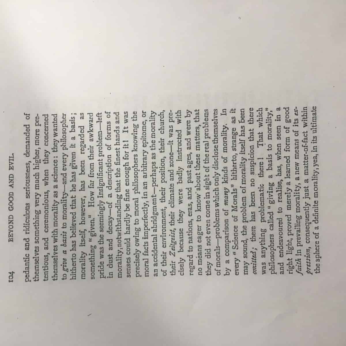 Beyond Good and Evil by Friedrich Nietzsche talks about the “will to truth” where the author insists that to learn the truth, a person must question everything that they have learned or observed. Nietzsche posits that nothing is free from self-interrogation, including one’s perception, teachings in society, and religion. The……………………