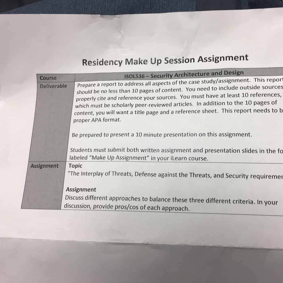 Students must submit both written assignment and presentation slides in the folder labeled “Make Up Assignment” in your iLearn course. + Assignment Topic “The Interplay of Threats, Defense against the Threats, and Security requirements” Assignment Discuss different approaches to balance these three different criteria. In your discussion, provide pros/cos of each approach