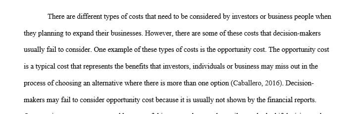 For this discussion, post 2–4 paragraphs about the types of costs that decision makers may fail to consider when looking at a potential expansion. Include in your discussion: