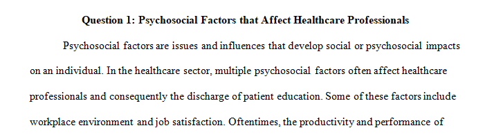 1. Give examples of psychosocial factors that affect the health care professional and the effect those factors could have on patient education.